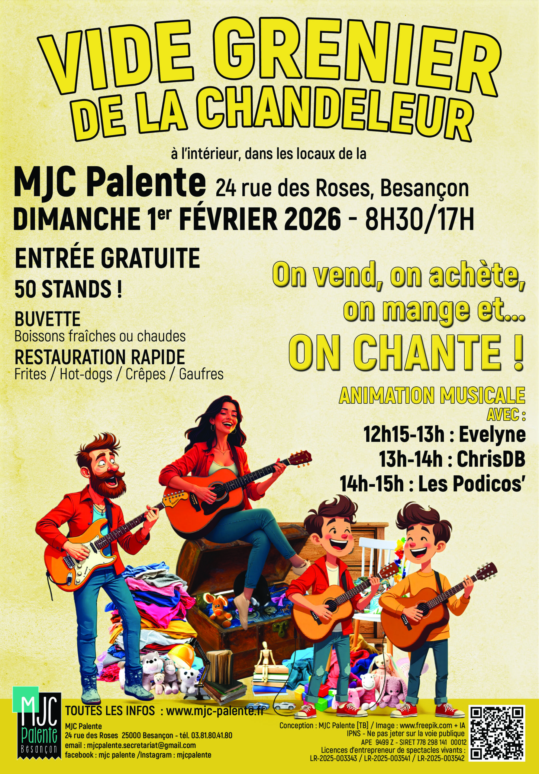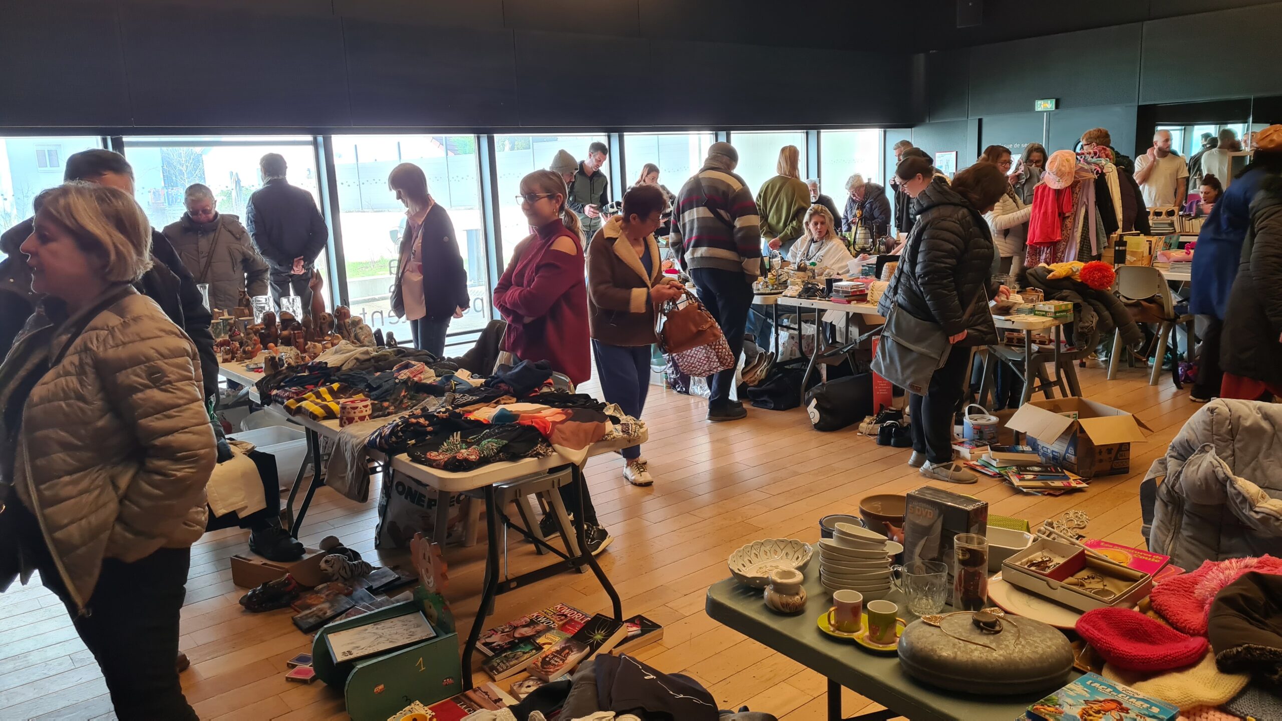 En ce dimanche 1er février 2026, veille de la Chandeleur, la MJC Palente a organisé son premier vide grenier, à l’intérieur de ses locaux. De 8h30 à 17h, dans la salle polyvalente Cécile Marquiset, dans le hall et dans deux autres salles, ce sont plus d’un millier de personnes qui ont pu chiner à loisir, bien au chaud, prenant juste une pause pour se restaurer au Café des Tilleuls.