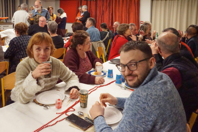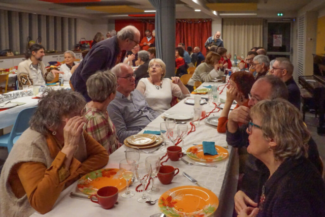 Ce Réveillon partagé, où chacun amène sa spécialité, salée ou sucrée, que l’on partage dans une ambiance conviviale, a ravi les danseurs, novices ou confirmés. Trois équipes de bénévoles ont permis d’organiser le repas, d’accueillir les convives et de ranger la MJC pour la nouvelle année.
